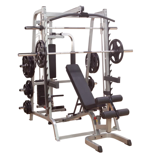 Body Solid GS348QP4 Series 7 Complete Our new Series 7 Smith Gym allows you to develop muscle mass beyond your imagination at a rate that will amaze you. You get virtually all the same exercises as you do in a fully equipped gym, but in the convenience of your own home, on your own schedule, without the need for a spotter.