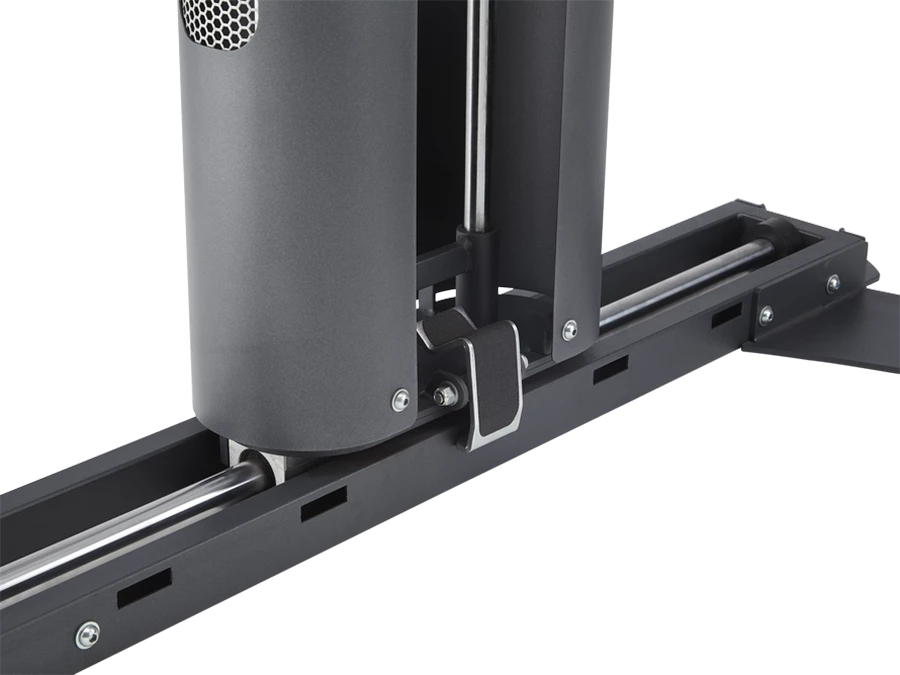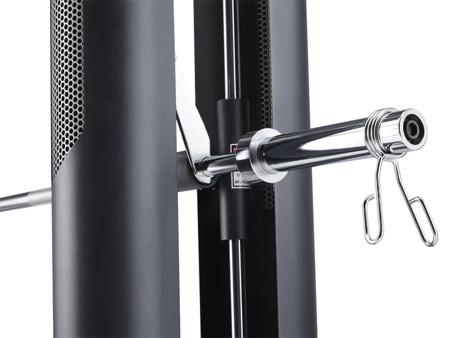 The Jones Platinum offers a series of patented barbells which have the ability to move forward, backward, up, and down. When equipped with our patented Active Balance Bar, the Jones Platinum offers the user a near free-weight training experience by forcing the user to balance the barbell just like a free-weight bar all while allowing the user to safely rack the barbell at any time during their training. The Jones Platinum can also lock into place which allows the user to move the barbell in an up and down motion only. This provides the user with a very stable training system, suitable for injury rehabilitation and users new to strength training.
