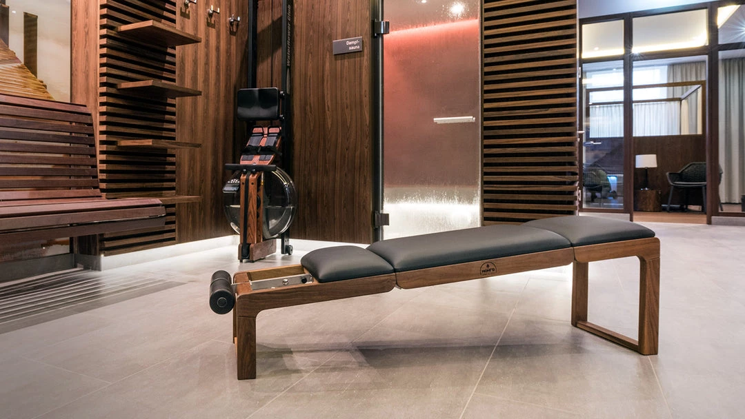Opened into full extension the TriaTrainer can be used for all standard bench workouts with or without free weights.
