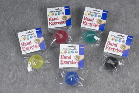 TheraBand® Hand Exercisers are specially formulated exercisers provided in a progressive sequence of five translucent colors and in two sizes. They’re used for hand, finger and forearm strengthening, as well as hot and cold therapy.